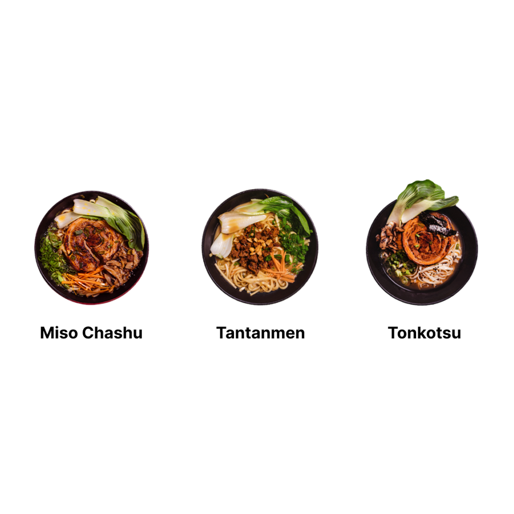 Genieße die Vielfalt mit unserem 5er Set! Jeweils eine Portion Miso Chashu, TanTanMen, Tonkotsu, veganem TanTanMen und veganem Miso Ramen – fünfmal Ramen-Genuss.